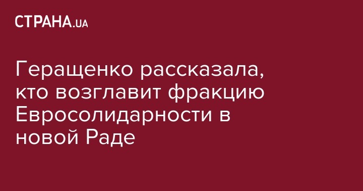 Геращенко рассказала, кто возглавит фракцию Евросолидарности в новой Раде