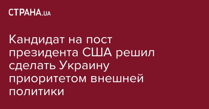 Один из претендентов на пост президента США (Демпартия) Джо Байден заявил про готовность сделать Украину приоритетом своей внешней политики в случае выигрыша выборов.