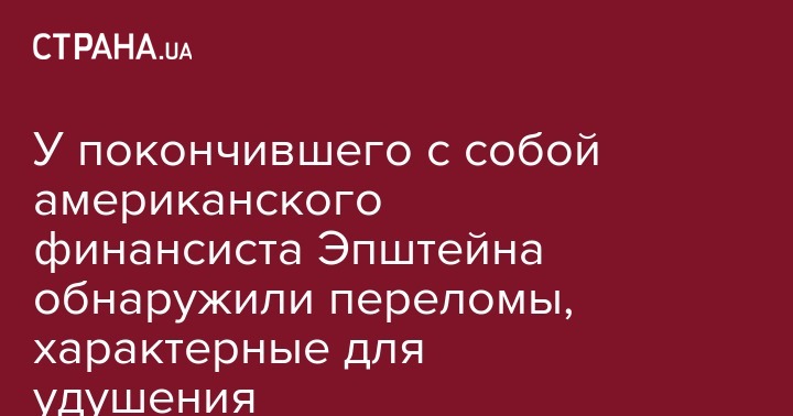 Множественные переломы костей в области шеи обнаружены при вскрытии тела американского миллиардера и финансиста Джеффри Эпштейна, покончившего с собой в тюрьме. Об сообщает в четверг газета The Washington Post со ссылкой на источники.
