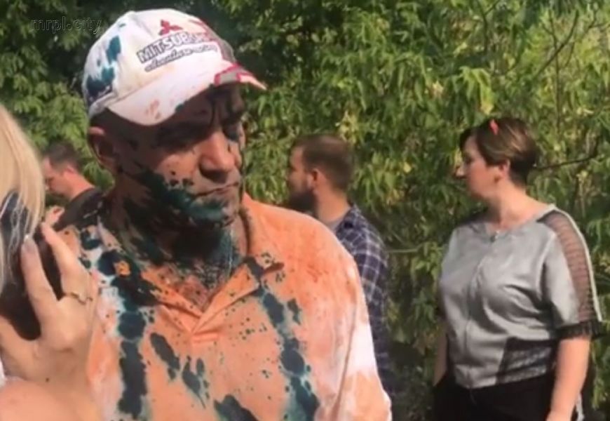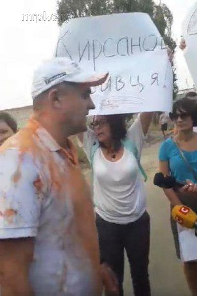 Как сообщает мариупольское издание "mrpl.city", на выходе из следственного изолятора Кирсанова ждали активисты и жители "Восточного". Они окружили мужчину и облили его томатным соком и зеленкой. В руках некоторые активисты держали плакаты "Кирсанов убийца" и "Восточный помнит".