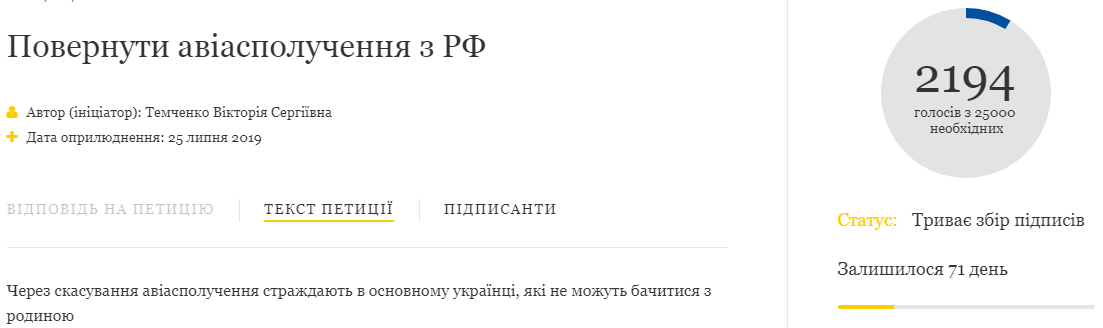 На сайте президента Украины опубликовали электронные петиции с призывом возобновить авиасообщение с Россией и пустить поезда в Крым.