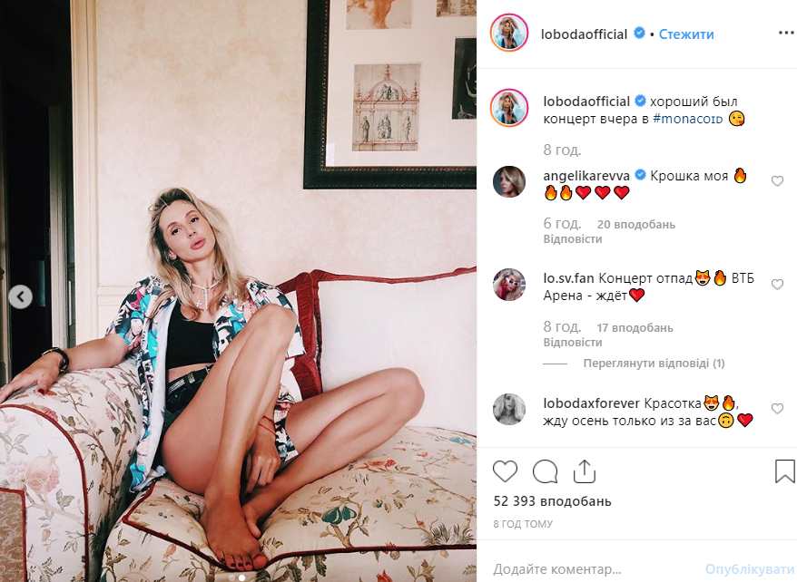 Украинская певица Светлана Лобода показала в соцсети свои длинные ноги и в то же время уставшее лицо. Фото звезда опубликовала на своей странице в Instagram.