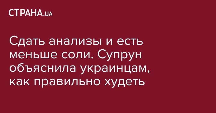 Сдать анализы и есть меньше соли. Супрун объяснила украинцам, как правильно худеть