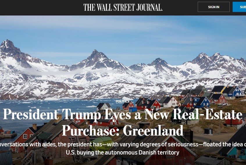 "Президент Трамп присматривается к новой недвижимости: Гренландии" - статью с таким заголовком опубликовал вчера The Wall Street Journal.