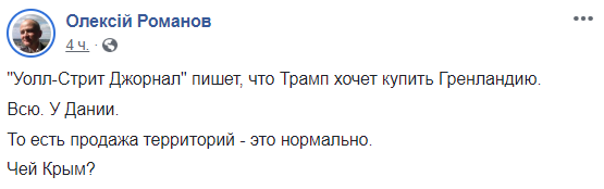 "То есть продажа территорий - это нормально. Чей Крым?", - спрашивает юрист Алексей Романов.