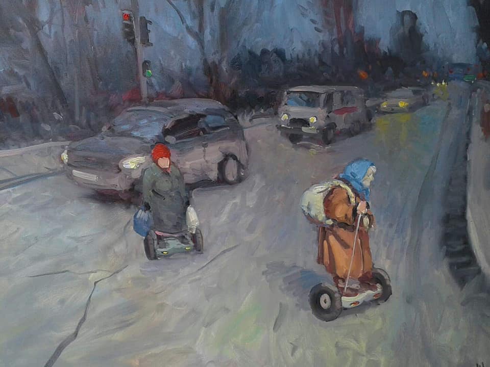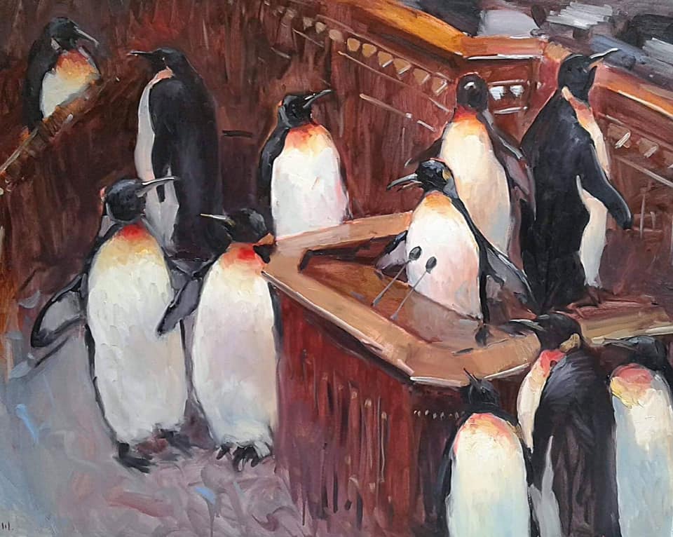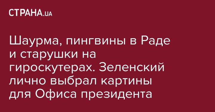 Шаурма, пингвины в Раде и старушки на гироскутерах. Зеленский лично выбрал картины для Офиса президента