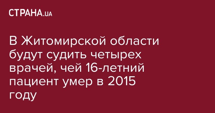 В Житомирской области будут судить четырех врачей, чей 16-летний пациент умер в 2015 году