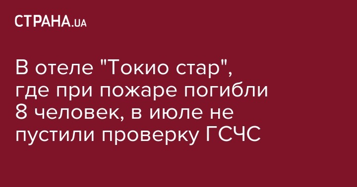 Государственная служба по чрезвычайным ситуациям (ГСЧС) планировала в июле проверить одесский отель "Токио Стар", в котором 17 августа произошел пожар, однако ее сотрудника не допустили к проверке. Об этом сообщает "Униан" со ссылкой на заместителя директора Департамента предупреждения чрезвычайных ситуаций ГСЧС Украины Павла Афанасьева.