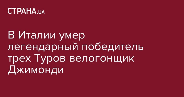 В Италии в возрасте 76 лет скончался легендарный велогонщик, получивший неформальный титул обладателя "Гранд Тура" Феличе Джимонди. Об этом пишет газета La Gazzetta dello Sport.