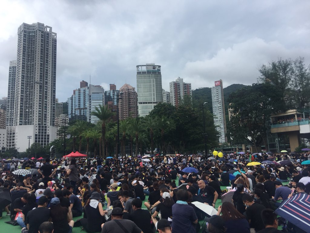 Полиция не дала согласия на марш из-за опасений по поводу безопасности и разрешила протестующим оставаться в парке до вечера. Однако спустя два часа после начала акции демонстранты нарушили запрет: тысячи человек под зонтиками двинулись по улицам города.