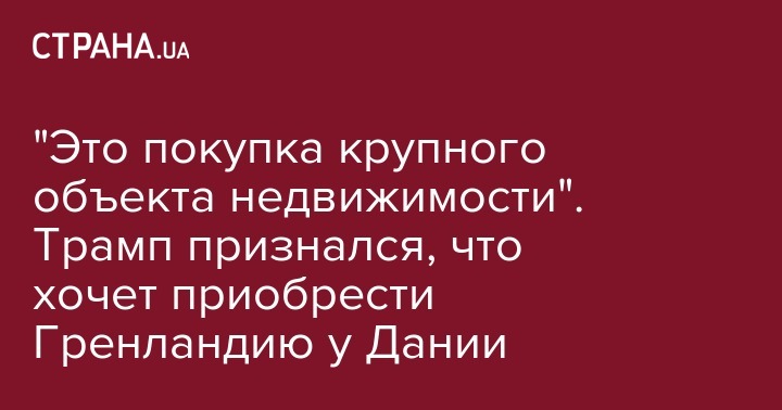 "Много чего можно сделать. По своей сути это крупная сделка по приобретению недвижимости", - сказал Трамп. Он выступил с утверждением, что Дания несет значительные финансовые убытки из-за того, что в состав королевства входит Гренландия. По версии главы Белого дома, Дания теряет из-за этого "почти $700 млн ежегодно".
