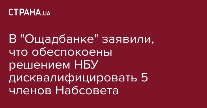 "Мы, члены наблюдательного совета "Ощадбанка", шокированы и обеспокоены решением Национального банка Украины дисквалифицировать пять членов наблюдательного совета. Пять высококвалифицированных специалистов с безупречным опытом работы и репутацией были дисквалифицированы квалификационной комиссией НБУ без объяснения причин. При отсутствии объяснения можно сделать вывод только из опубликованного релиза НБУ, что реальной причиной отклонения кандидатур стало недовольство некоторых членов комиссии НБУ недавним решением совета продлить трудовой контракт с председателем правления "Ощадбанка" Андреем Пышным. Мы ожидали, что в соответствии с общепризнанными стандартами объективности и надлежащего проведения процесса комиссия НБУ обнародует причины, по которым пятеро из нас были дисквалифицированы, чтобы позволить нам хотя бы опровергнуть эти возражения. Даже дискреционные полномочия должны осуществляться не в самовольной манере, а в соответствии с критериями справедливости", - подчеркивается в заявлении.