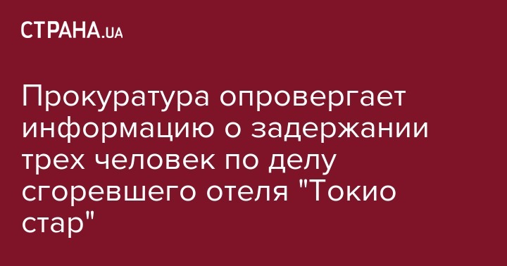 По делу о пожаре в одесской гостинице "Токио стар" правоохранители задерживали только собственника отеля Вадима Черного, информация о задержании 18 августа еще троих людей не соответствует действительности. Об этом со ссылкой на пресс-службу прокуратуры Одесской области сообщает "Радио Свобода".