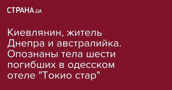 По состоянию на утро 19 августа опознаны тела уже шестерых из девяти погибших при пожаре в отеле "Токио Стар". Об этом на аппаратном совещании в мэрии сообщил городской голова Одессы Геннадий Труханов, передает "Думская".