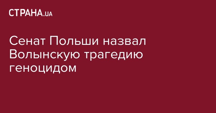 Сенат Польши (верхняя палата парламента Польши) благодаря голосам правящей партии "Право и справедливость"  призвал Сейм (нижняя палата парламента Польши) провозгласить 11 июля Национальным днем памяти жертв геноцида, совершенного украинскими националистами против граждан Второй Речи Посполитой во время Волынской трагедии, передает Радио Польша.