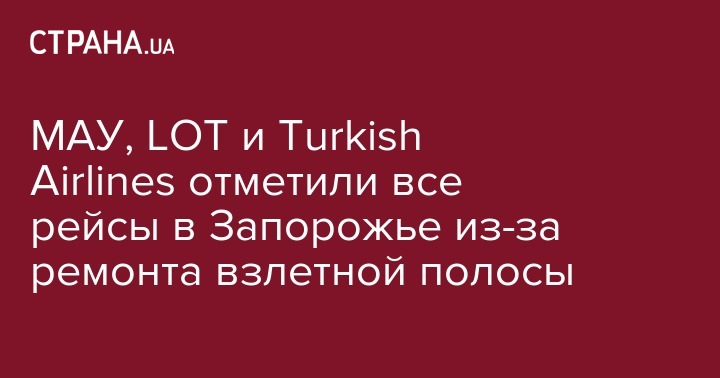 МАУ, LOT и Turkish Airlines отметили все рейсы в Запорожье из-за ремонта взлетной полосы