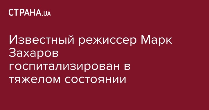 Уточняется, что  Захаров попал в реанимацию в тяжелом состоянии. У него диагностировали двустороннее воспаление легких. По данным издания, режиссер чувствовал недомогание в течение последних нескольких дней, однако отказывался обращаться к врачам. Он попросил оказать медицинскую лишь помощь после того, как у него началась тяжелая одышка.