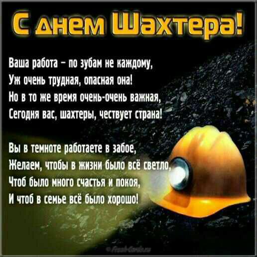 Шахтерский труд не каждому под силу, сегодня его чествует страна! Желаем, чтоб работа счастье приносила, а жизнь шахтера длилась долгие года!