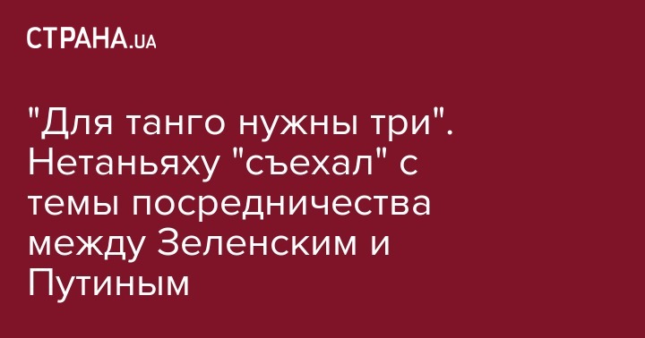 "Для танго нужны три". Нетаньяху "съехал" с темы посредничества между Зеленским и Путиным