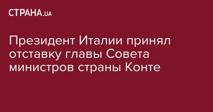 Президент Италии Серджо Матарелла во вторник принял отставку председателя Совета министров страны Джузеппе Конте, передает итальянский телеканал Rai24.