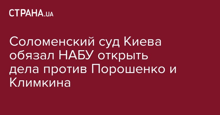 Соломенский районный суд Киева обязал Национальное антикоррупционное бюро Украины (НАБУ) открыть уголовное производство по факту возможных злоупотреблений служебным положением министром иностранных дел Павлом Климкиным и экс-президентом Петром Порошенко.