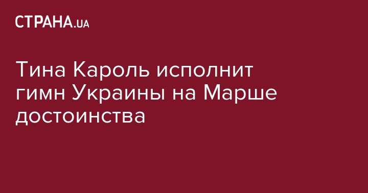Украинская певица Тина Кароль будет петь гимн Украины во время Марша достоинства ко Дню Независимости, который пройдет в Киеве 24 августа. Об этом сообщил pr-менеджер артистки Павел Орлов на своей странице в соцсети.