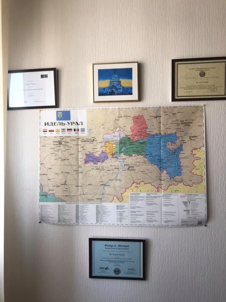 Как сообщил на своей странице депутат Оппозиционной Платформы Олег Волошин, который сделал репост сообщения, имелась ввиду карта организации "Свободный Идель-Урал", что состоит из российских эмигрантов в Киеве, выступающих за отделение народов Поволжья от России.