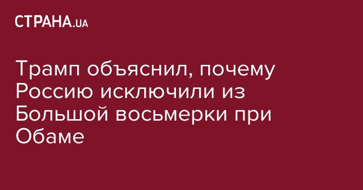 "Я полагаю, что президент Обама - из-за того, что Путин его переиграл - подумал: нехорошо, что Россия в G8, так что он захотел, чтобы Россию исключили", - сказал Трамп.