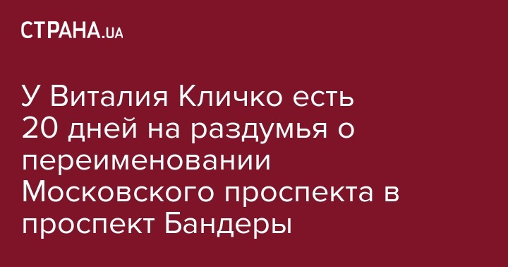 У Виталия Кличко есть 20 дней на раздумья о переименовании Московского проспекта в проспект Бандеры