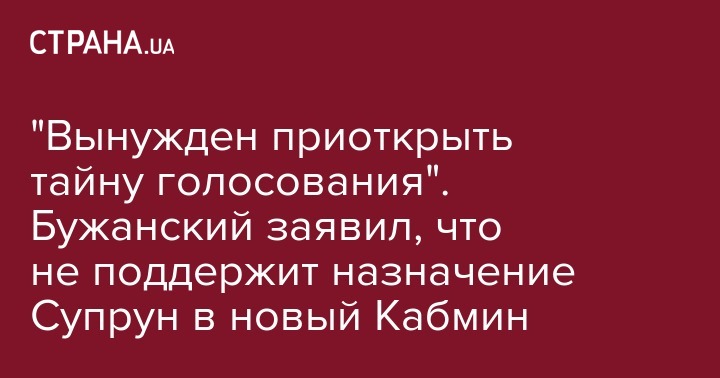 Нет, я не проголосую за назначение Ульяны Супрун министром здравоохранения ни при каких обстоятельствах. Проголосую против. Это тот случай, когда воздержаться пошло", - написал в соцсети Макс Бужанский.