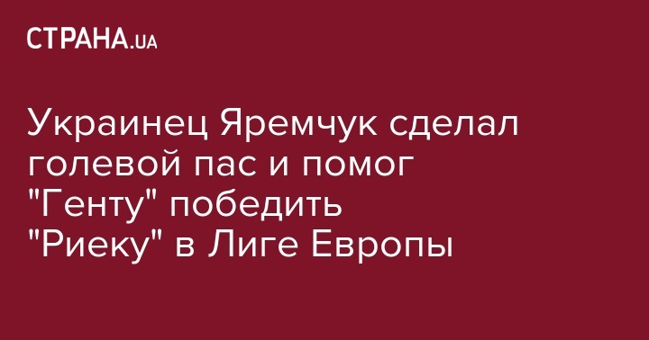 Нападающий из Украины Роман Яремчук отдал голевой пас за "Гент" в первом матче плей-офф Лиги Европы против хорватской "Риеки" (2:1), передает Укринформа