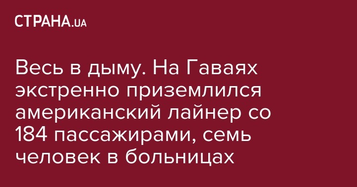 Авиалайнер американской компании Hawaiian Airlines, рейсом Окленд - Гонолулу, совершил экстренную посадку в пункте назначения. На борту произошло сильное задымление, из-за чего чего семь пассажиров были госпитализированы.