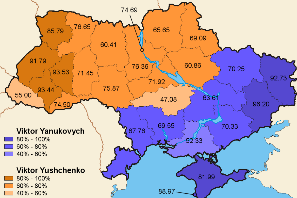 Судя по карте голосования, больше всего за Ющенко выступали именно пять присоединенных Сталиным областей (от 76 до 94% поддержки). Без них президент-пчеловод гарантированно бы проиграл Януковичу.