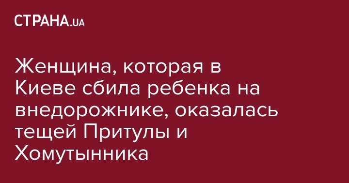 Стала известна личность водителя, который в четверг, 22 августа, в Дарницком районе столицы наехал на маму с 9-летним сыном. Это - теща известного шоумена Сергея Притулы, а также политика Виталия Хомутынника. Новость передает пресс-служба полиции Киева.