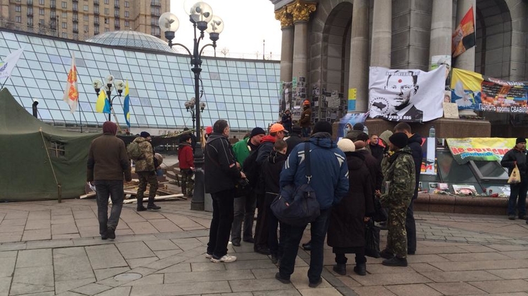 Оперативные новости с Майдана. На площади стоит одна палатка. Протестующие в количестве 50 человек крутятся возле стеллы. Подхожу. Интересуюсь, чего требуют.