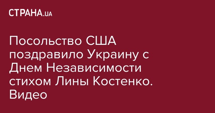 Посольство США поздравило Украину с Днем Независимости стихом Лины Костенко. Видео