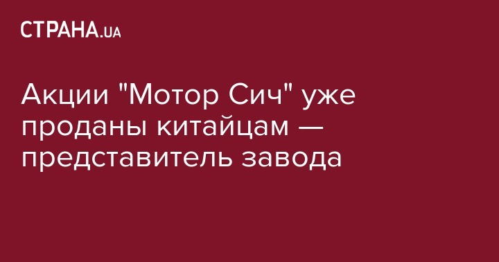 Китайские компании Skyrizon и Xinwei Group уже приобрели больше 50% акций завода "Мотор Сич" и подали заявку на согласование сделки в Антимонопольный комитет Украины (АМКУ). Об этом передает Hromadske