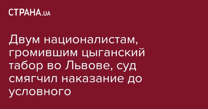 Пустомытовский районный суд Львовской области признал виновными в хулиганстве двух старшеклассников, в прошлом году напавших на цыганский табор во Львове, однако освободил их от отбывания наказания. Об этом сообщает Zaxid.net.