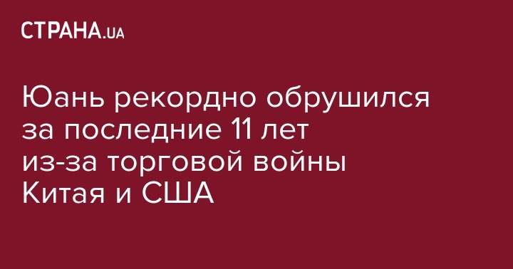 Юань рекордно обрушился за последние 11 лет из-за торговой войны Китая и США