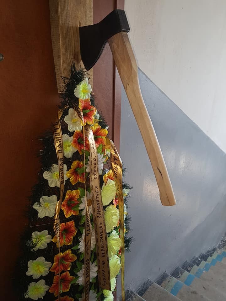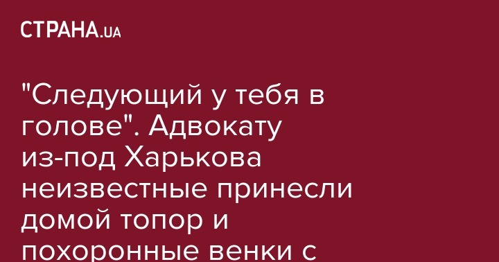 "Следующий у тебя в голове". Адвокату из-под Харькова неизвестные принесли домой топор и похоронные венки с угрозами