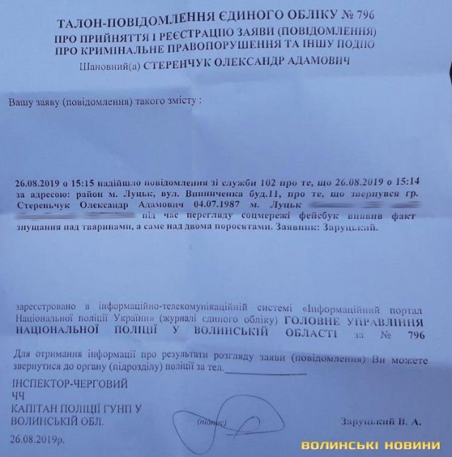 Инцидент возмутил пользователей соцсетей, которые даже пожаловались в полицию. Как пишет издание, луцкий режиссер Александр Стеренчук рассказал, что написал в полицию по поводу жестокого обращения с животными.