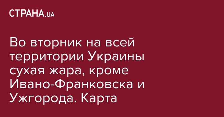 Во вторник, 27 августа, во всех областях Украины ожидается жара без осадков, лишь в Закарпатской и Ивано-Франковской областях возможны кратковременные грозовые дожди. Об этом сообщает Украинский гидрометцентр.
