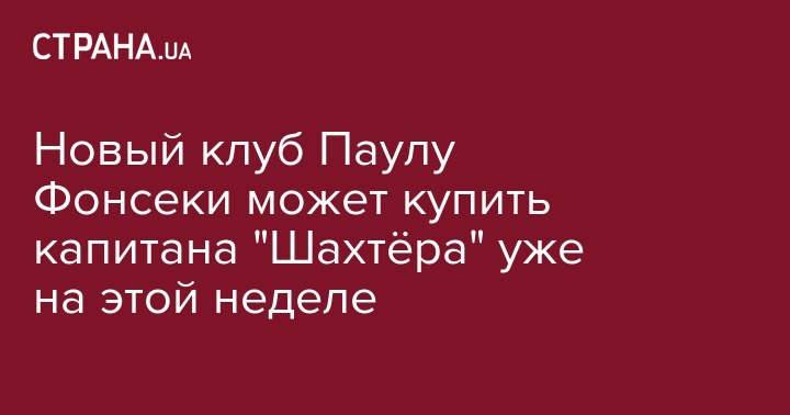 Новый клуб Паулу Фонсеки может купить капитана "Шахтёра" уже на этой неделе