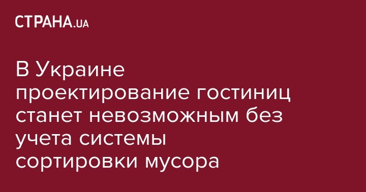 Обязательные требования по устройству современных систем раздельной сортировки мусора при проектировании новых или реконструкции существующих зданий гостиниц содержатся в новых изменениях в государственные строительные нормы. Об этом сообщил заместитель министра регионального развития, строительства и жилищно-коммунального хозяйства Украины Лев Парцхаладзе на своей странице в Facebook.