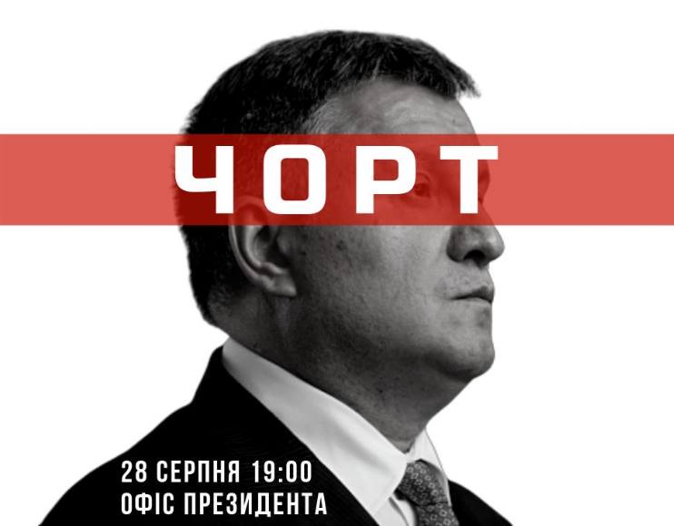 В среду, 28 августа, у здания Офиса президента на Банковой состоится акция протеста против министра внутренних дел Арсена Авакова. Об этом в Facebook написал блогер Роман Синицын.