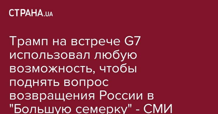 Президент США Дональд Трамп на встрече лидеров стран-членов "Большой семерки" использовал любую возможность, чтобы публично заявить о необходимости возвращения в состав объединения России.