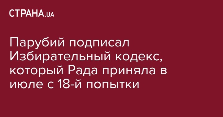 Председатель Верховной Рады 8 созыва Андрей Парубий подписал Избирательный кодекс, который предусматривает выборы народных депутатов по системе с открытыми списками. Об этом спикер сообщил в своем аккаунте в Twitter.