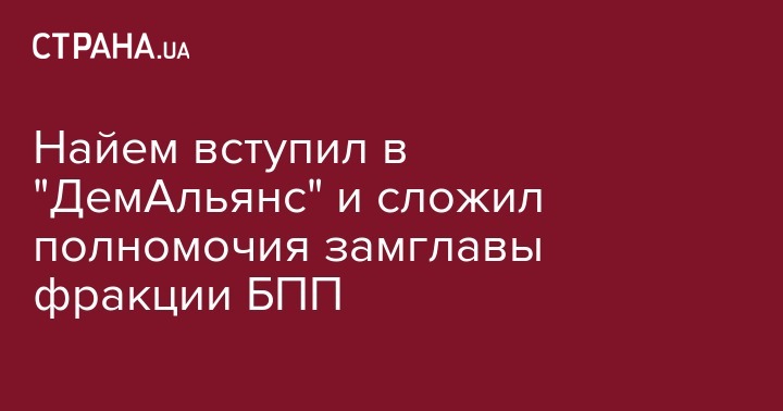 Как сообщала "Страна", народные депутаты Украины Светлана Залищук, Маустафа Найем и Сергей Лещенко официально вступили в партию "ДемАльянс". Об этом на странице вFacebook сообщила корреспондент телеканала NewsOne Екатерина Лисунова.  Лисунова добавила, что об этом событии будет сообщено на съезде политсилы в субботу, 9 июля.