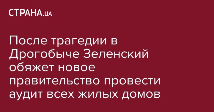 Президент Украины Владимир Зеленский выразил соболезнование родственникам погибших в результате обвала подъезда жилого дома в г.Дрогобыч (Львовская обл.) и анонсировал проведение новым правительством аудита всех жилищных домов.