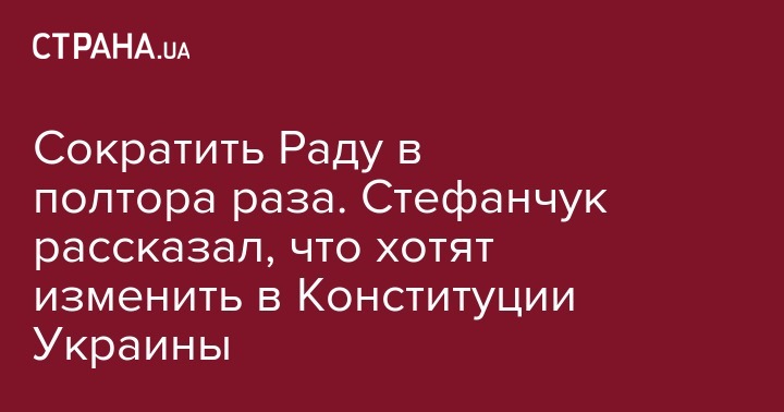 Сократить Раду в полтора раза. Стефанчук рассказал, что хотят изменить в Конституции Украины